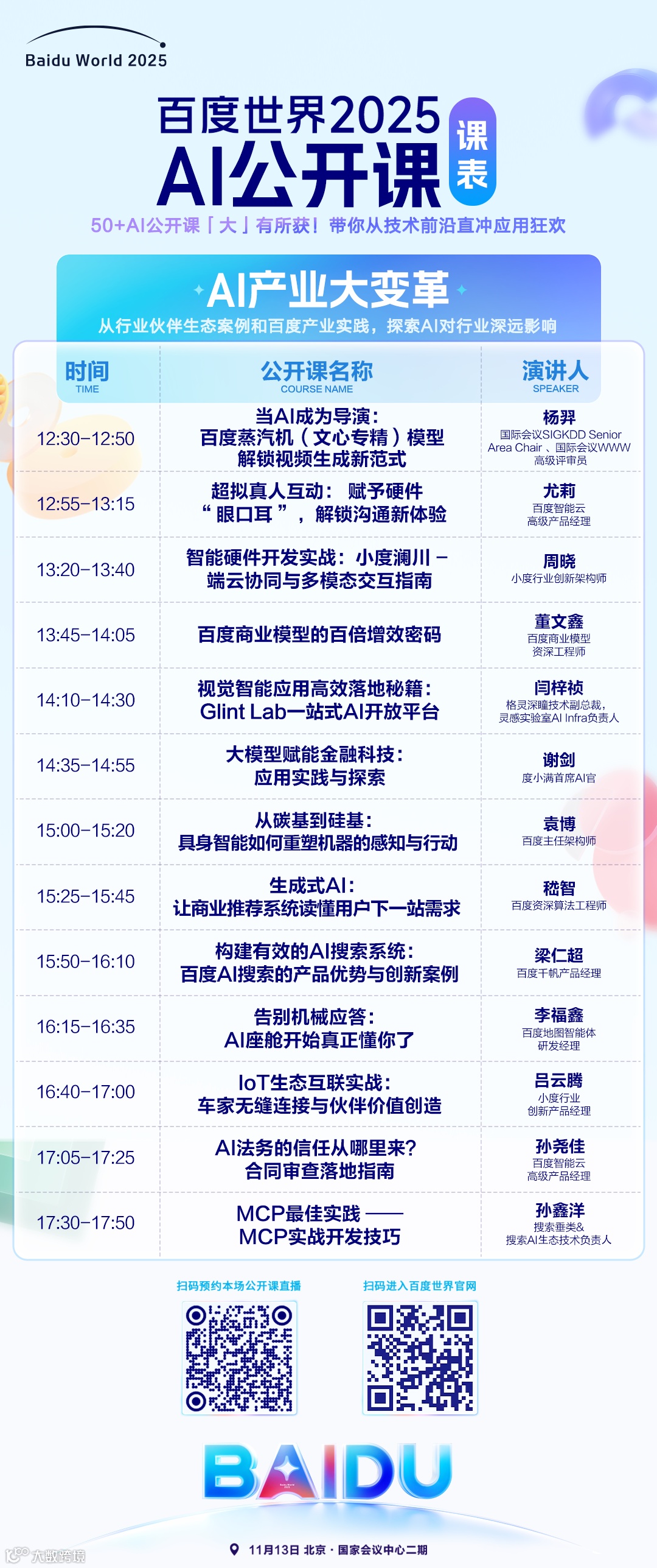 导读:百度世界2025公开课,带你从技术前沿直冲应用狂欢!