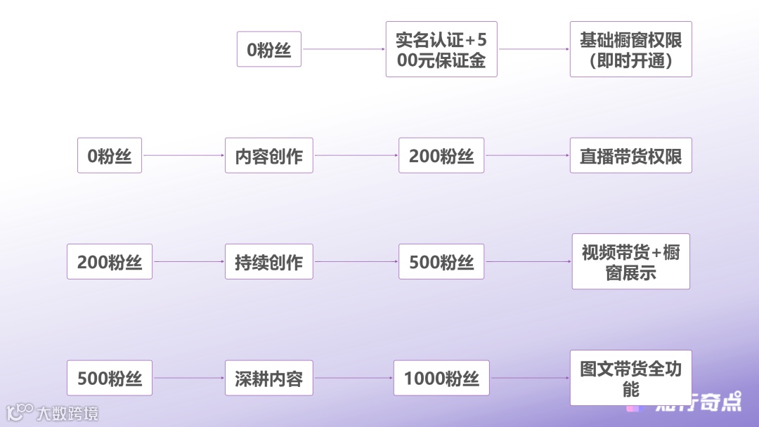 2025年4月17日起实施的最新政策,抖音电商大幅降低了达人开播门槛,将个人创作者开通直播间带货权限的粉丝条件从1000个降至200个。现在的规则是:有效粉丝数量大于等于200即可开通直播带货权限,大于等于500可开通视频带货权限并展示橱窗,大于等于1000可开通图文带货权限。这意味着,如果你愿意投入时间积累粉丝,完全可以绕过500元保证金这道门槛。