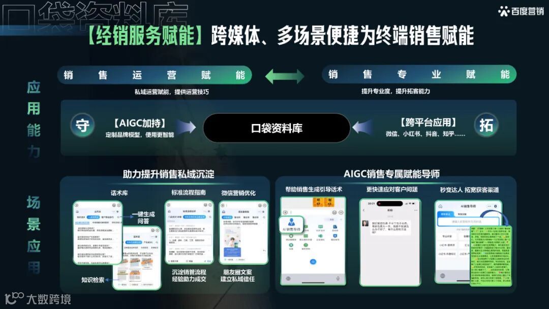 百度输入法口袋资料库,借助百度AI大模型能力,可对白酒企业进行定制化赋能。通过为企业定制标准话的产品资料库、门店经销话书库,服务SOP等标准化资料,赋能一线门店将客户沉淀。另一方面,百度输入法口袋资料库还可以帮助销售小白快速专业应对用户问题,让销售秒变达人生成营销文案等功能,成为销售的贴心营销助手。