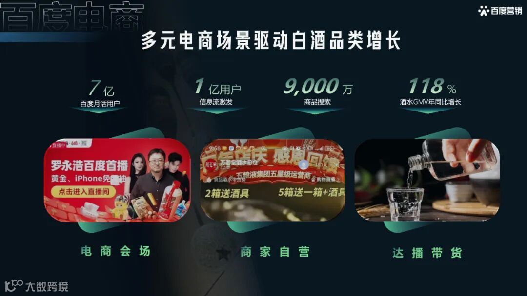 百度电商白酒品类迅猛增长,通过边搜边买、边看边买的形式为品牌引流精准购买人群。百度通过