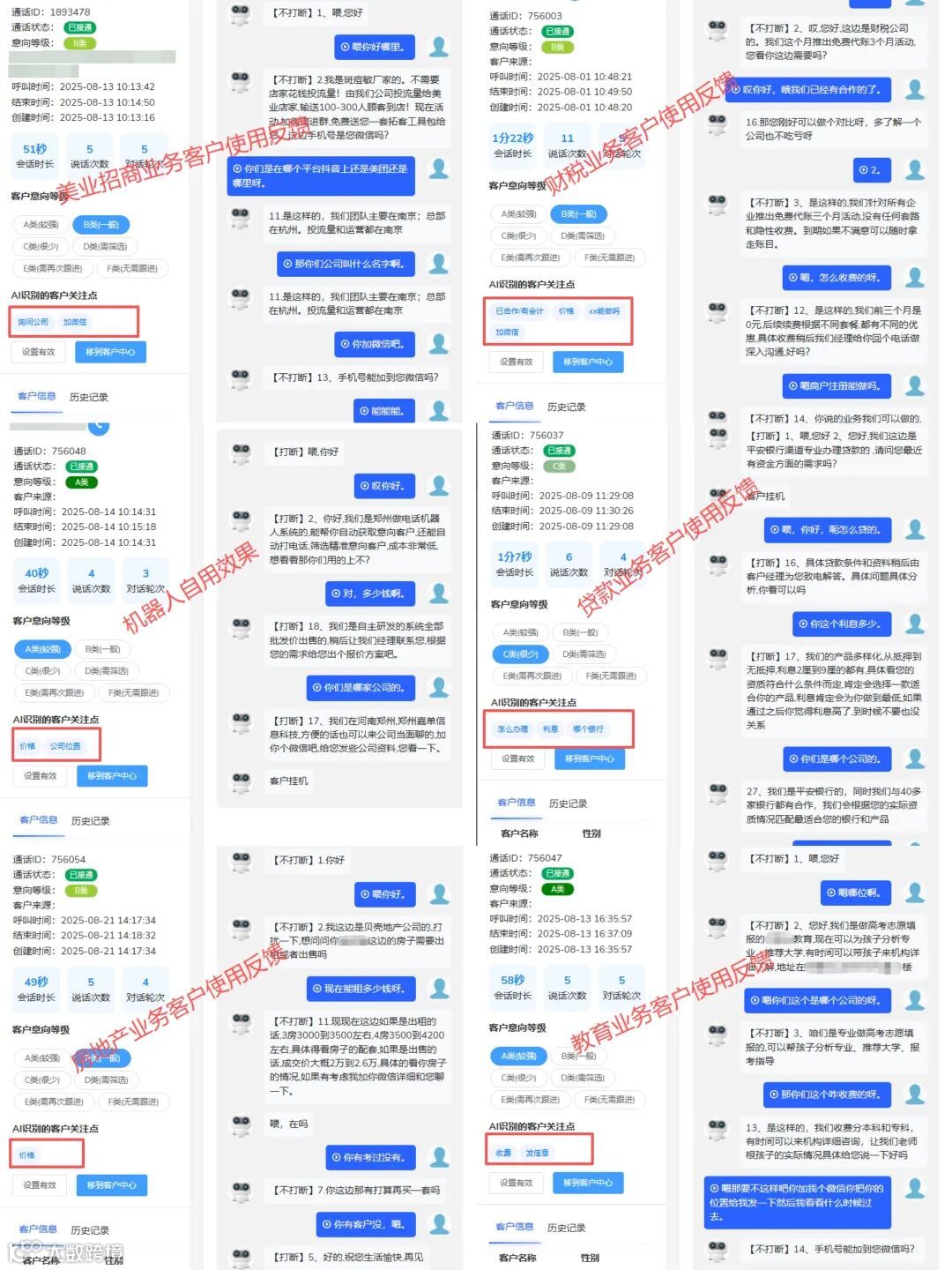 5、自动记录结果:自动外呼系统对与客户进行产品介绍或者问答(邀约售前服务,回访客户),以及其他需要与销售员沟通的事项