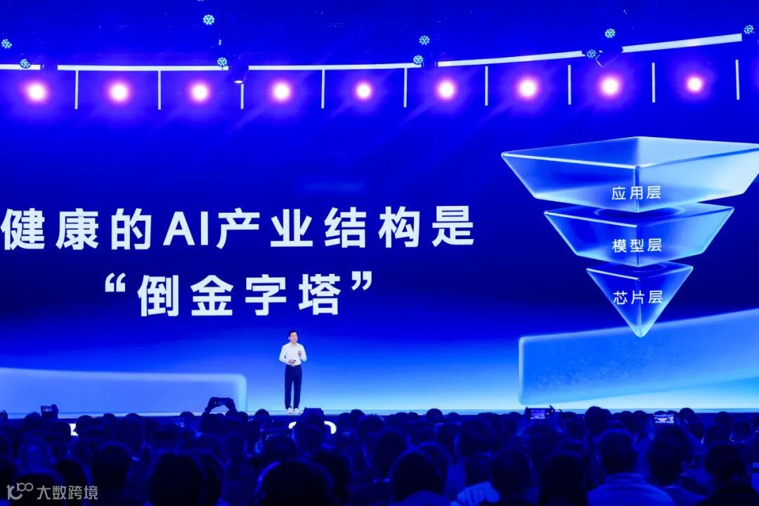 大会上,李彦宏再次强调AI应用创新的价值,他表示,AI产业结构正从不健康的“正金字塔”,转变为健康的“倒金字塔”。