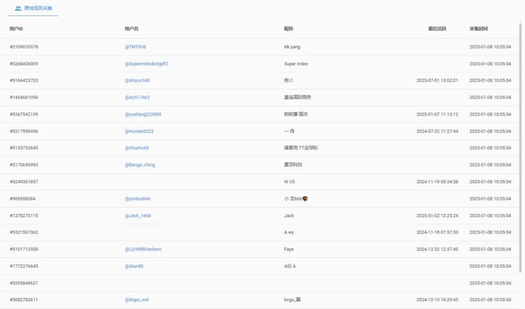 面对部分隐藏群组成员,该工具同样具备独特优势。通过群聊采集模式,可将隐藏成员完整抓取,实现更全面的数据覆盖。此外,系统还能根据国家、语言、群组活跃度等维度对采集数据进行智能筛选,让运营者能够聚焦更高价值的客户。