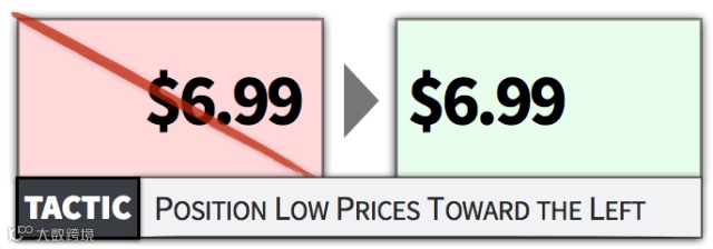 由于人脑倾向于把更小数字排到左边,将价格数字放在制作物更左边的位置可以激活大脑产生较低的价格认知。
