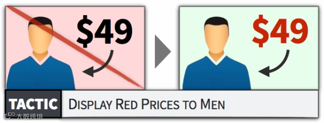 由于男性更容易受到价格数字色彩的影响,当他们遇到红色价格的时候,他们更倾向于围绕这一价格(且只围绕这一价格)作出判断: