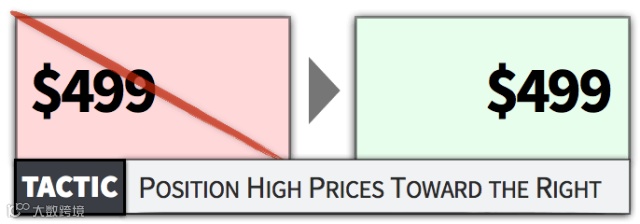 但是,别抢跑,千万不要把所有的价格都放在左边,只放符合大脑规则的价格(比方说,较低的价格放左边)。