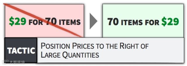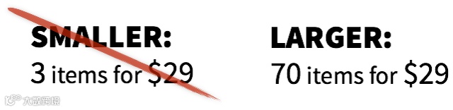 当数量数字更大时,锚定效应将发挥作用,消费者被锚定在更多的数量时,他们会误认为价格很有吸引力。