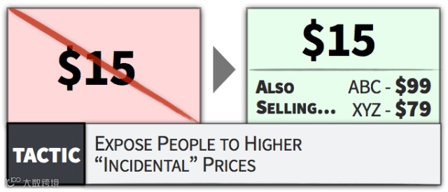 上两个战略帮助你降低了消费者对价格的认知。不过,还有另外一种异曲同工的战术——将竞品的价格认知提高。