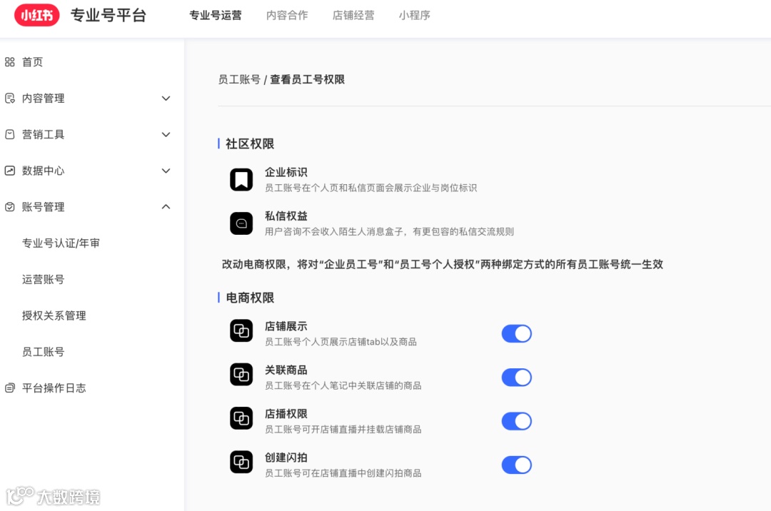 2. 员工账号不得在小红书站内开店或为蒲公英已入驻达人、不能是蓝V账号