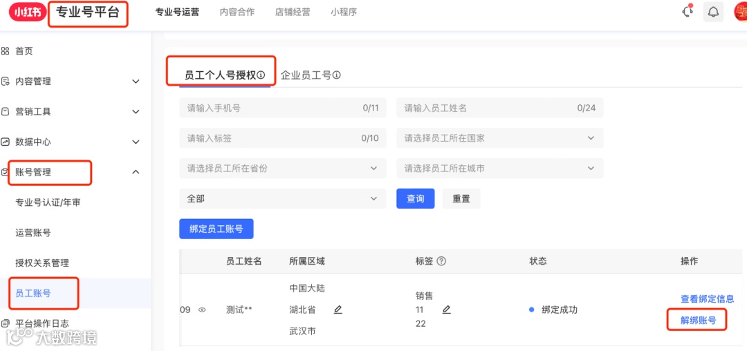 1. 员工个人授权号:换绑即解绑,见“员工账号解绑流程”