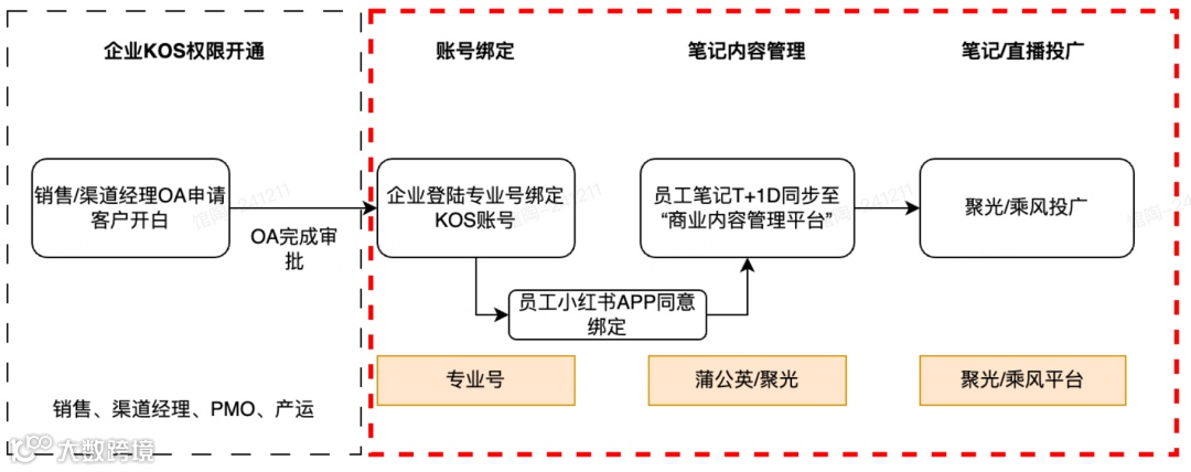 企业号开通KOS权限-->绑定KOS账号-->企业对KOS笔记/直播间进行投广