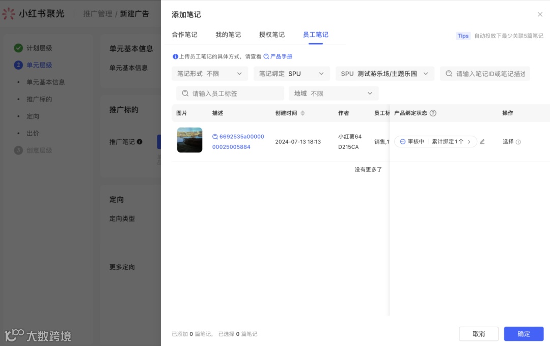 登陆聚光平台/乘风平台,创建计划后-选择【员工笔记】。