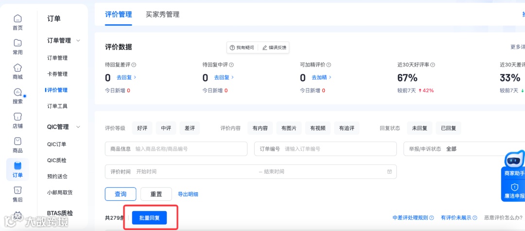 2.3 批量回复评价