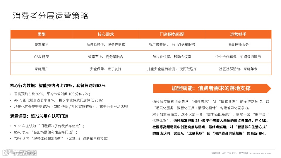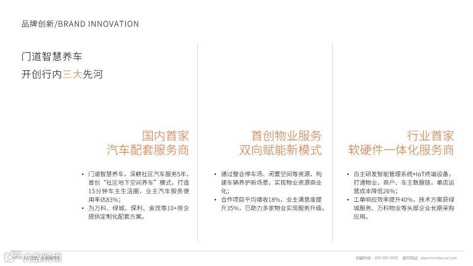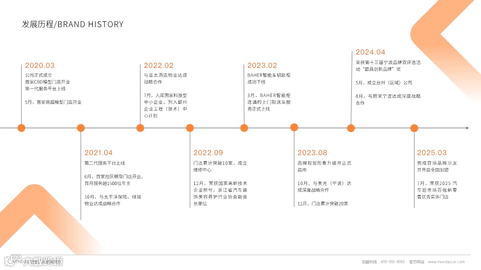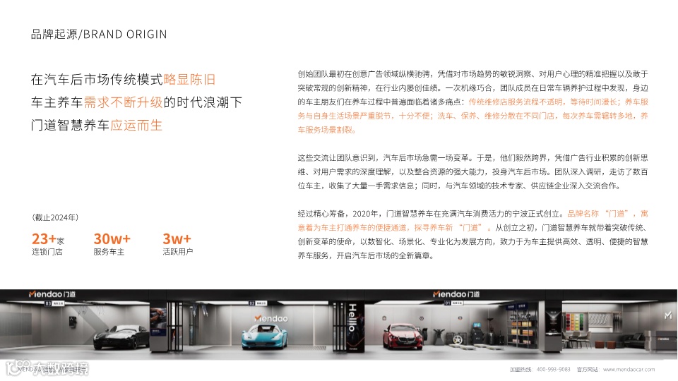 门道智慧养车是2020年成立于宁波的创新型汽车后市场服务品牌,以数智化养车体系为核心,通过跨界创新思维打破传统养护模式。品牌定位28-38岁年轻中产车主,提供场景化定制服务,包括CBD商务、社区和商超三种门店模型。核心特色是自主研发的BAHER智能车钥匙存储柜系统,实现无接触取送车服务。目前已在宁波开设23+家门店,服务超30万车主。品牌拥有十大加盟优势,单店投资约40万元,预计18-32个月回本,为加盟商提供从选址到运营的全流程支持。