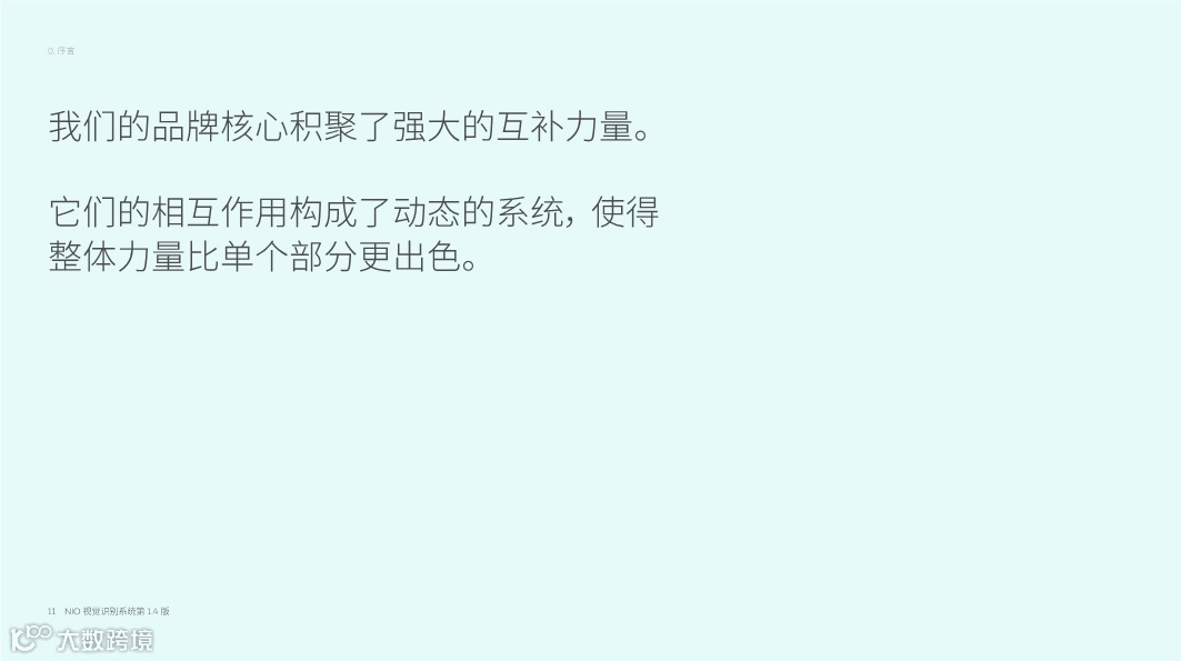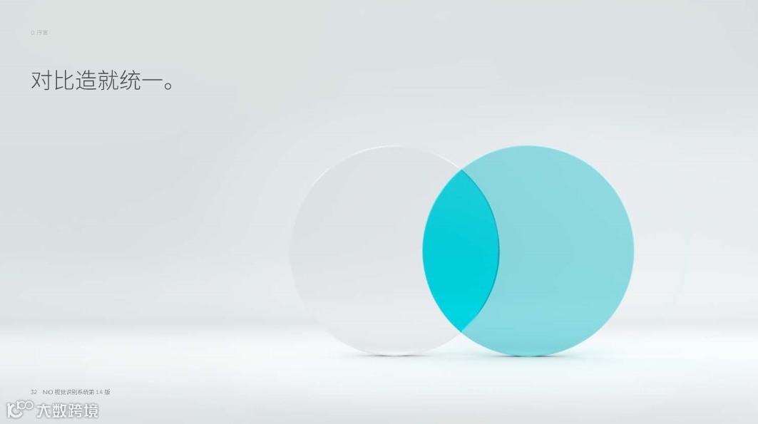 色彩系统:以Teal青绿色为核心品牌色(Pantone 7466),配合中性色和辅助色系,不同子品牌有专属配色方案(如NIOPower使用Teal+TwilightTeal)。