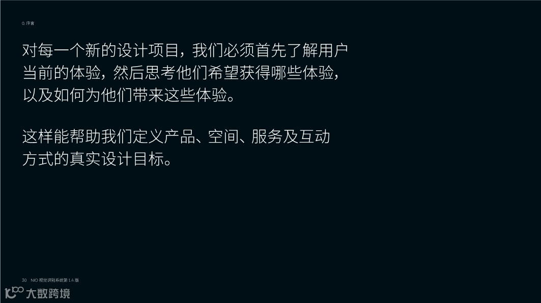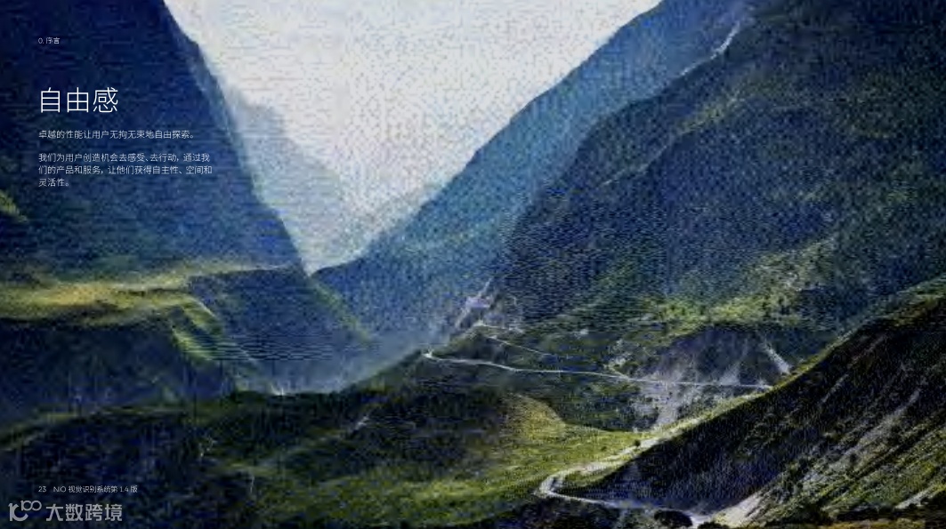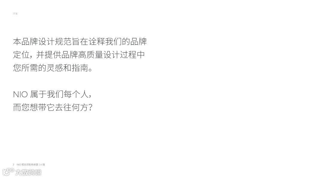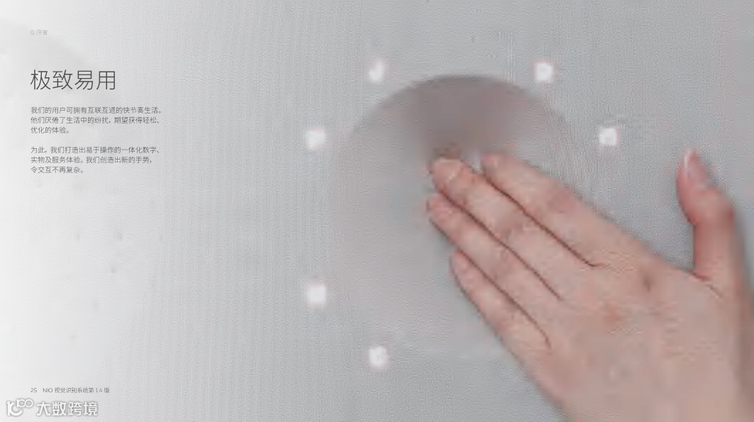 核心亮点包括:品牌商标的安全距离规范、专有的BlueSky字体系统、体现'BlueSkyComing'理念的天际线视觉应用、基于用户体验的五维设计理念(懂我/自由感/全感官愉悦/极致易用/安心之至),以及针对不同场景的子品牌视觉差异化方案(NIO House/NIO Power等)。手册通过400页详细规范确保品牌视觉的一致性,从纸质文件到数字界面,从车身涂装到空间导视系统均有明确指导。?