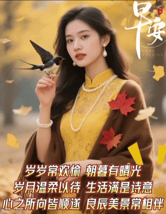 8:秋叶飘落添诗意,晨风拂面送福气。新的一天,愿你烦恼随风去,快乐常相伴,健康常左右,事事皆如意,早安吉祥!🍂