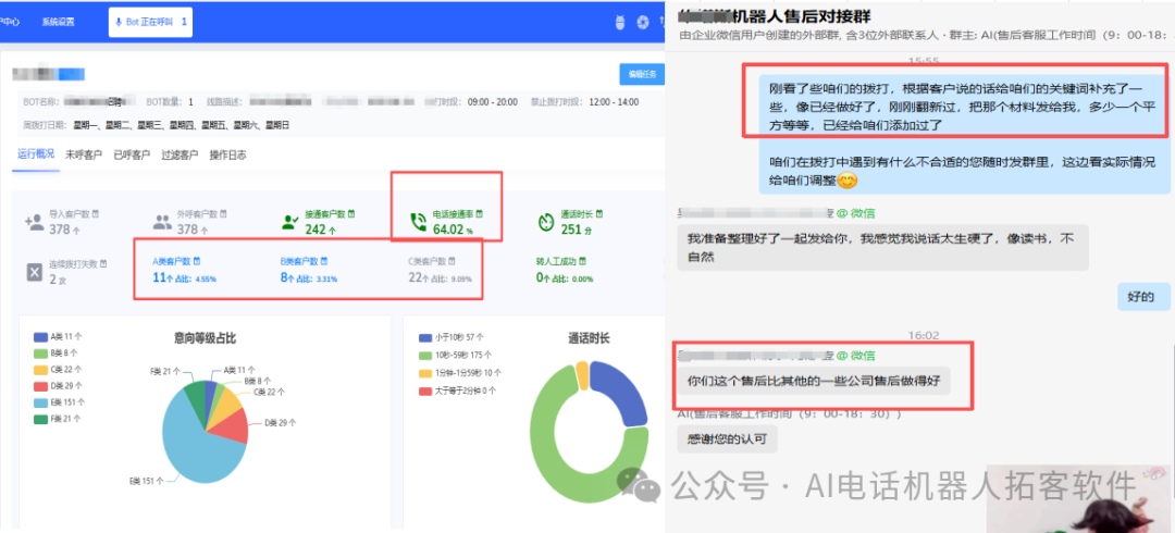 3、人工能打出来效果,那机器人肯定比人工的效率会更高。机器人采用的是真人录制的声音。所以说机器人跟真人打电话一个效果,都是录制的业务精英话术。更何况机器人每天可以外呼3000通电话,所以机器人效果只会比人工强的太多。