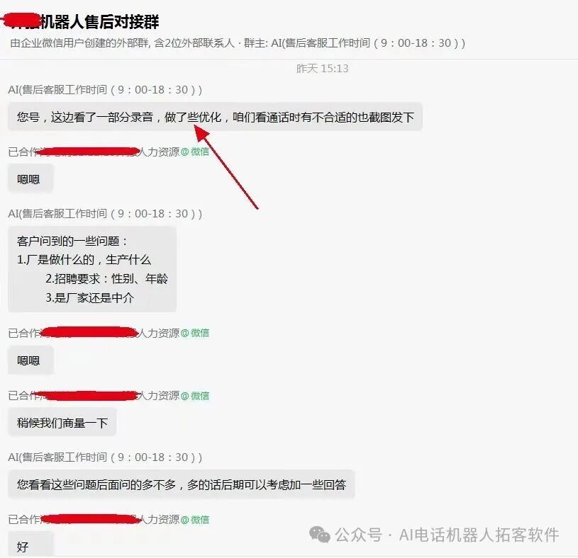 4、售后好,每个客户一个专门的用户群,售后客服和技术客服多对一服务,所有的操作问题随时都可以得到解决。后台定期巡查,关键词、话术优化,提高机器人效果,打造量身定制的企业话术。