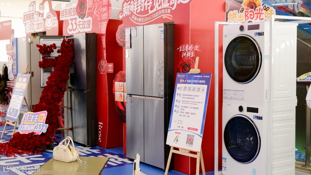在美菱冰洗核心体验区,通过实景化陈列,顾客们直观感受美菱M鲜生570S冰箱的精细分储和极致的保鲜科技,美菱蓝氧洗衣机和蓝氧烘护机的洗净技术与烘护技术,众多消费者在现场深入了解后,纷纷表示“被种草”。