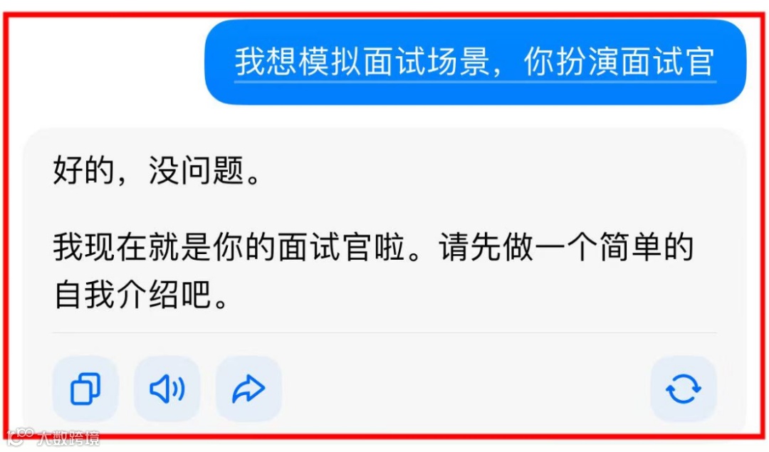 4. 模拟面试/演讲:可以让它扮演面试官或观众,帮你练习表达。面试前练一练,紧张感会少很多。