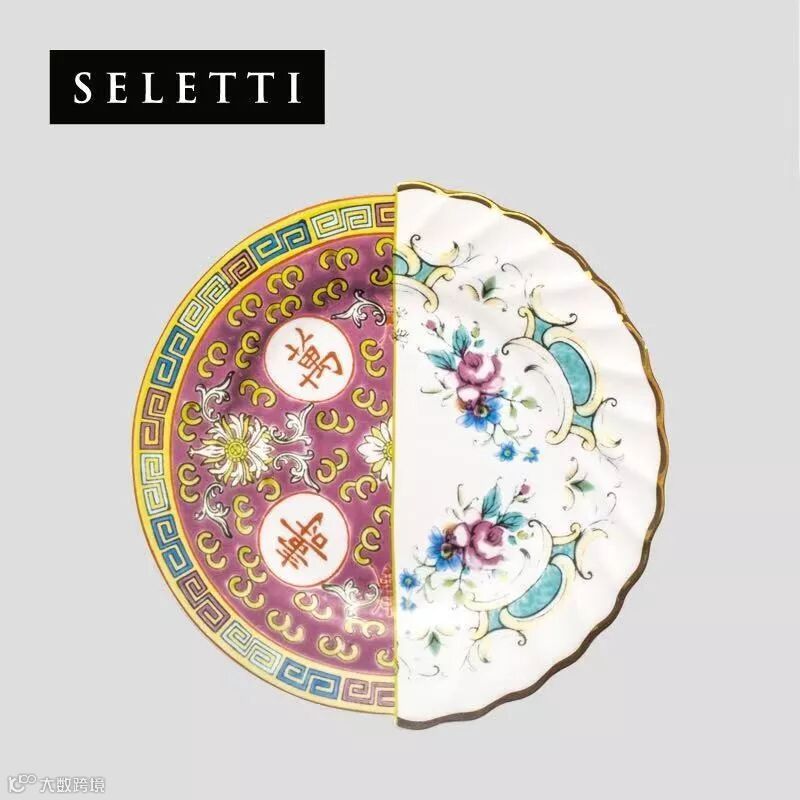 Seletti推出的HYBRID中西文化碰撞系列,欧洲宫廷洛可可风VS传统中国风,以一条泾渭分明的竖线加以区分,仿佛餐盘出现了分裂,又奇妙地和谐与统一,风格碰撞下的艺术品,在这个双十一用超低折扣带回家吧!
