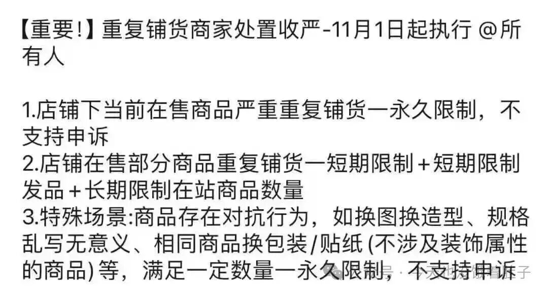 2025 年 10 月 29 日,Temu 官宣:11 月 1 日起全面治理重复铺货,恶意违规者永久封号且不申诉!3 天整改期内,大量卖家连夜自查,避免被平台 “清洗”。