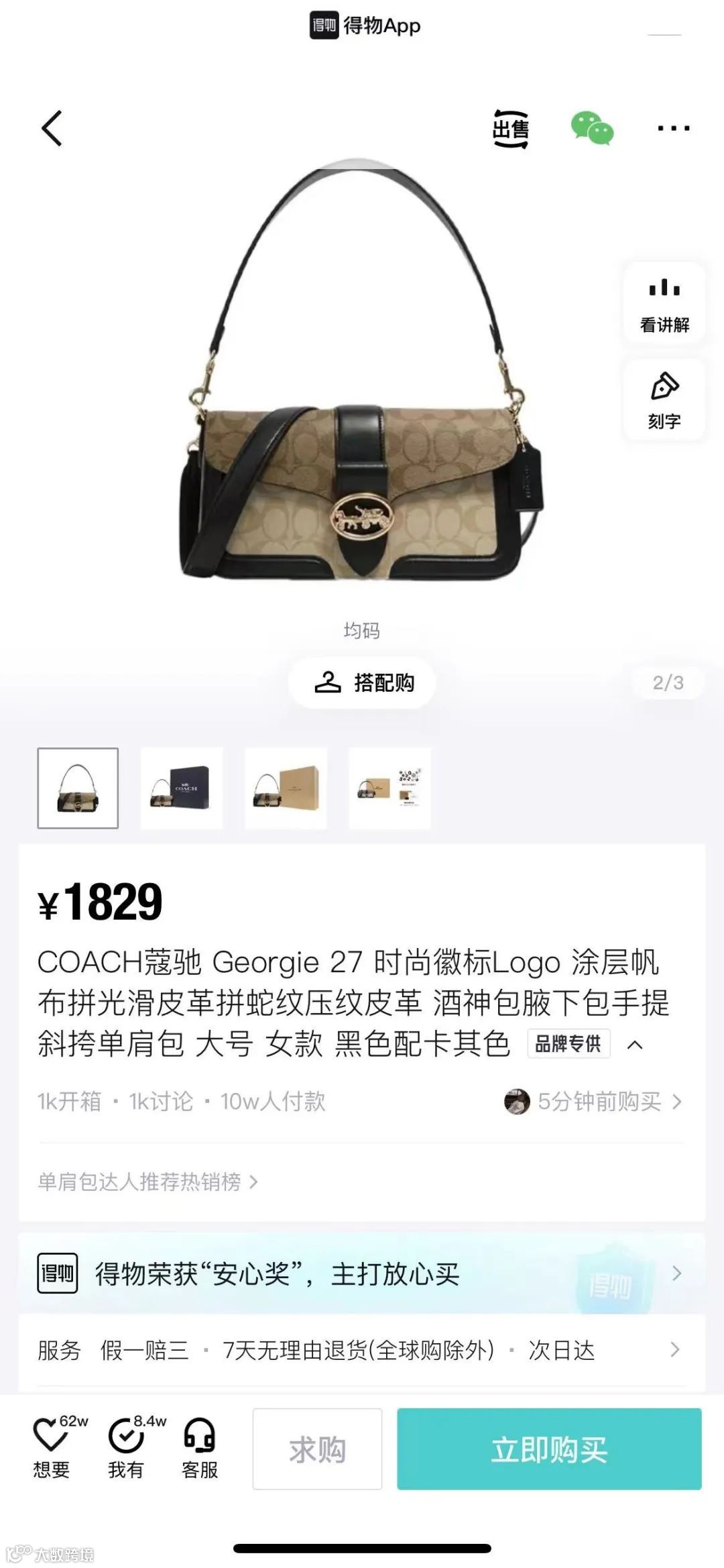 Coach是最早官方入驻得物,率先与得物达成官方合作的奢侈品牌,抓住了得物上的年轻人购买第一件奢侈品的机遇。
