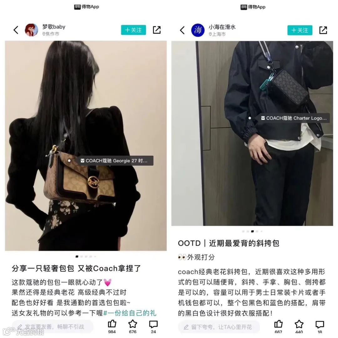 今年“得物520礼物季”的营销活动中,Coach与得物深度共创,通过用户画像以及兴趣分析选品,并与得物达人共创了多条视频内容,吸引了超过2000万年轻用户的关注和互动,Coach品牌日均成交额实现3倍爆发。
