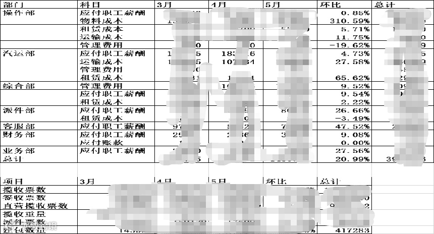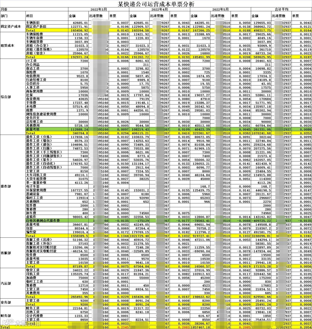 通过环比、同比及月均单票成本分析,得出整体系统成本水平[k]。