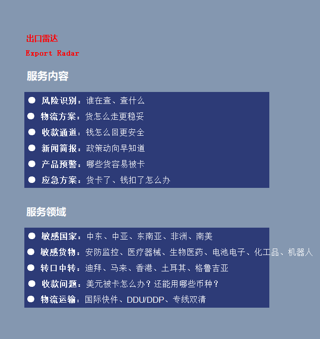 你报的是“电子设备”“安防系统”,但承运人一看里面有干扰模块、军品级雷达、特殊频段发射器,马上就要合规文件或直接拒收。