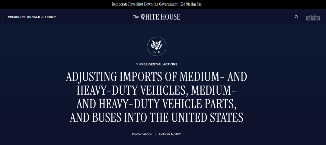The White House – Presidential Proclamation on Adjusting Imports of Medium and Heavy-Duty Vehicles, Parts, and Buses (2025年10月17日)