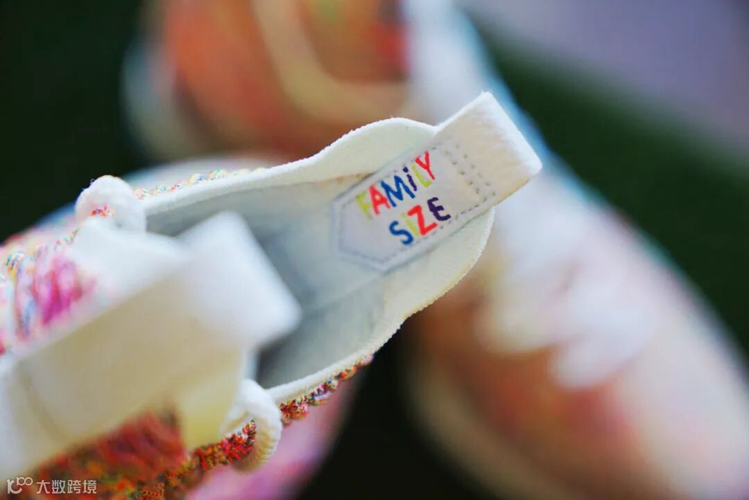 其中球鞋的细节也有所不同,鞋舌内侧加入 “FAMILY SIZE” 多彩刺绣,看起来童趣十足。