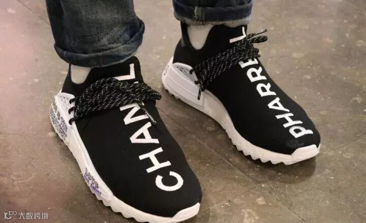 白色 Chanel、Pharrell 刺绣标于黑色鞋面,低调气质中溢出不凡的底蕴。
