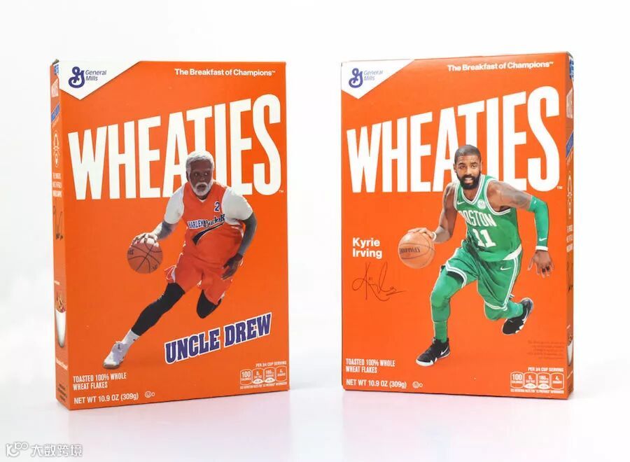 凯尔特人当家球星欧文对麦片情有独钟,在他的电影 《Uncle Drew》 上映前,Nike 携手美国知名麦片公司 General Mills 为他打造了 3 双非常独特的 Kyrie 4 系列。