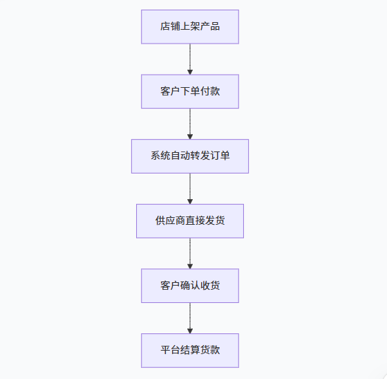 客户下单 → 系统通知供应商 → 商品直发虚拟仓 →