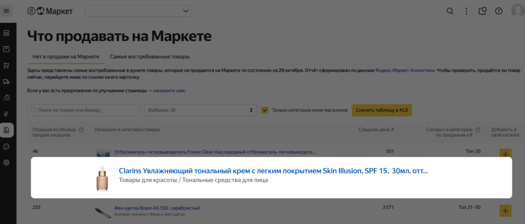 这个报告堪称 “蓝海探测器”,它会展示俄罗斯电商平台和搜索引擎里的高需求商品,但这些商品目前还没在 Yandex Market 上架。