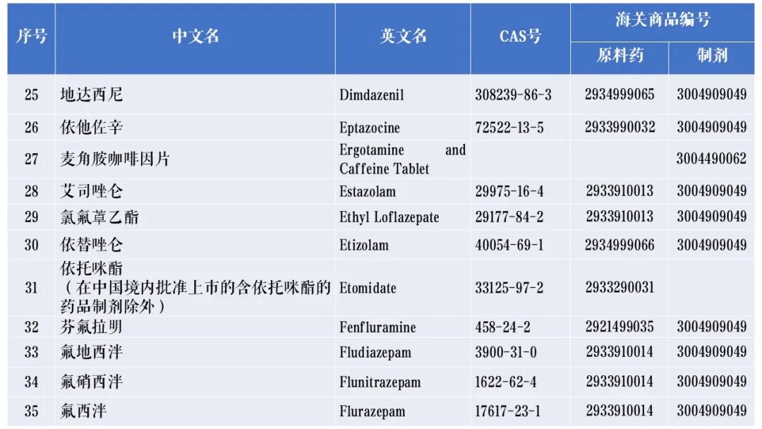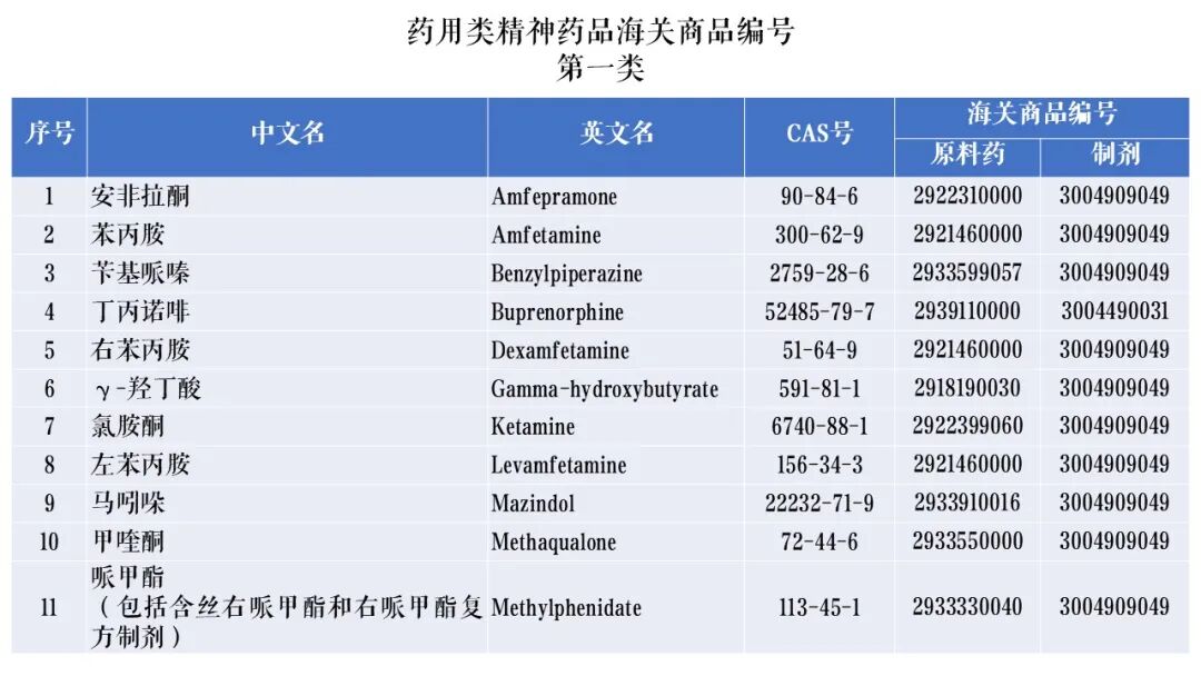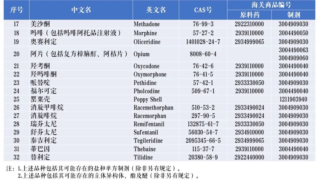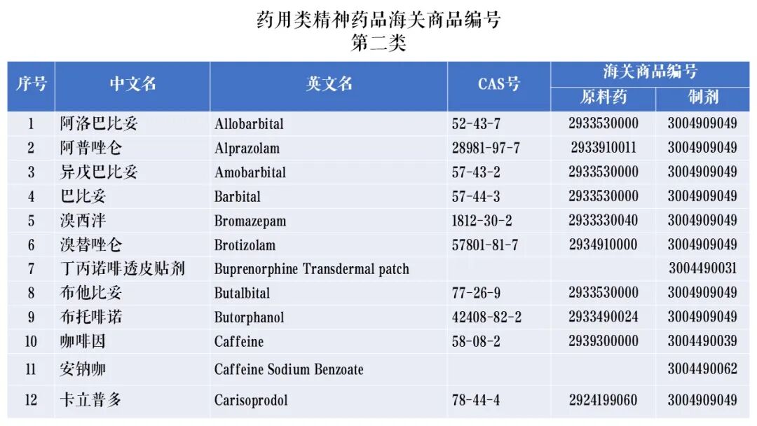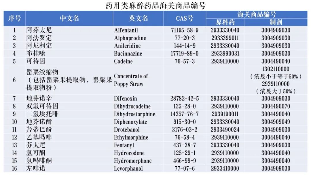 药用类麻醉药品和精神药品的海关商品编号(2025.11.15起施行)