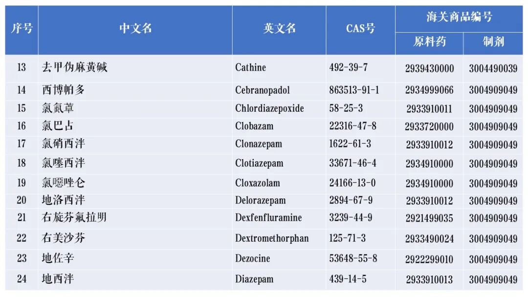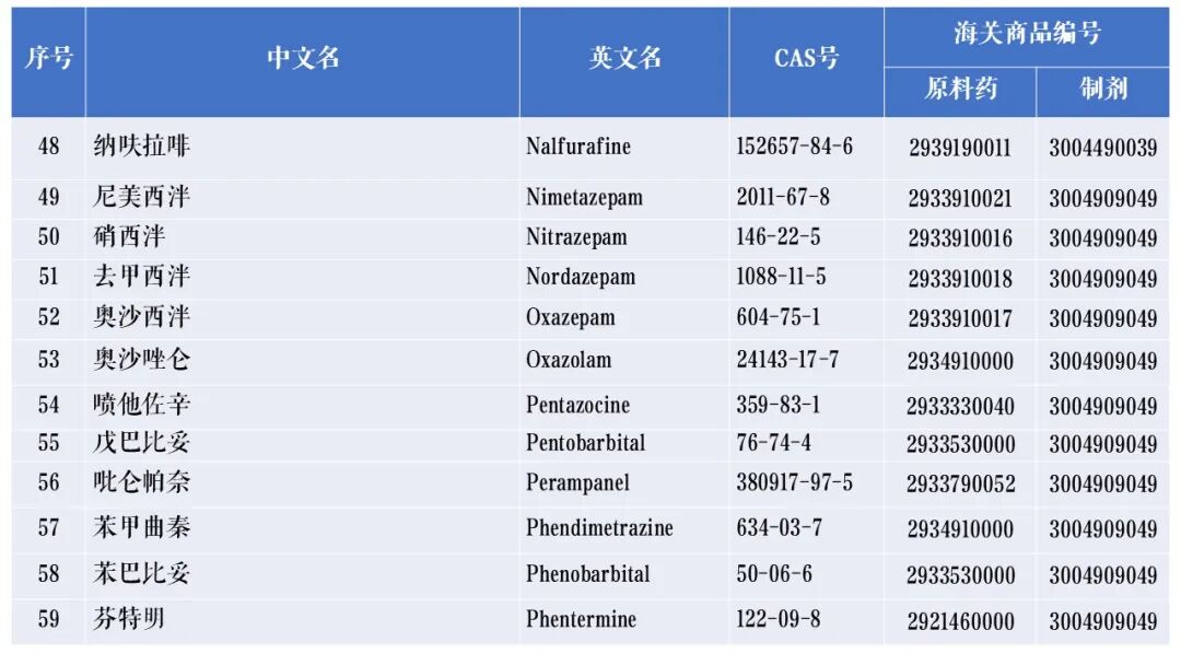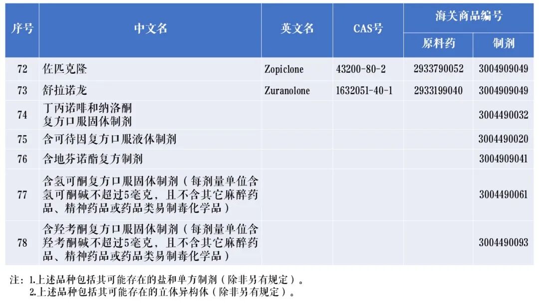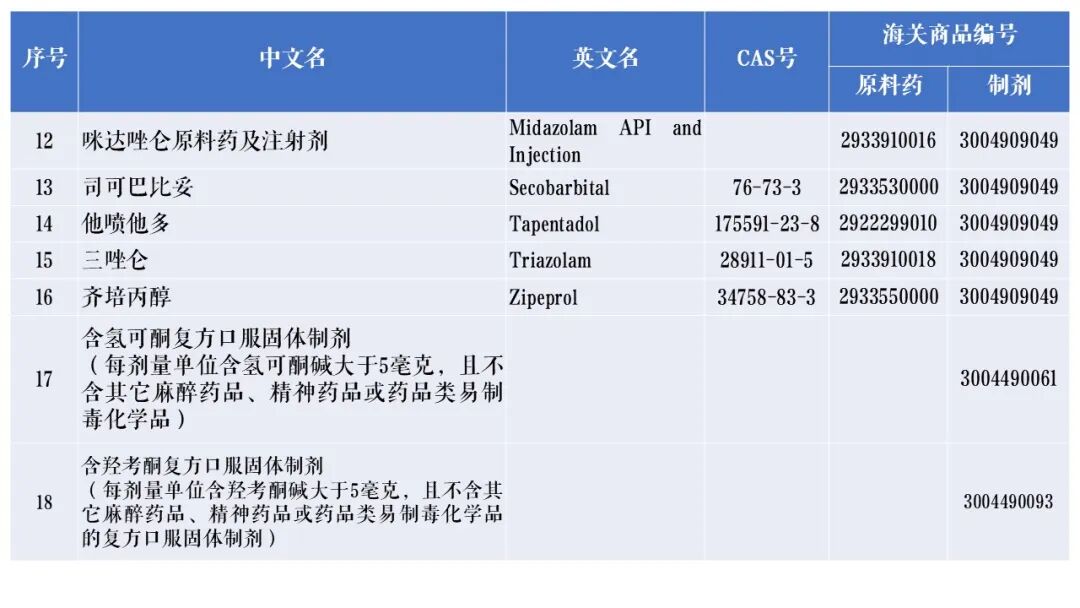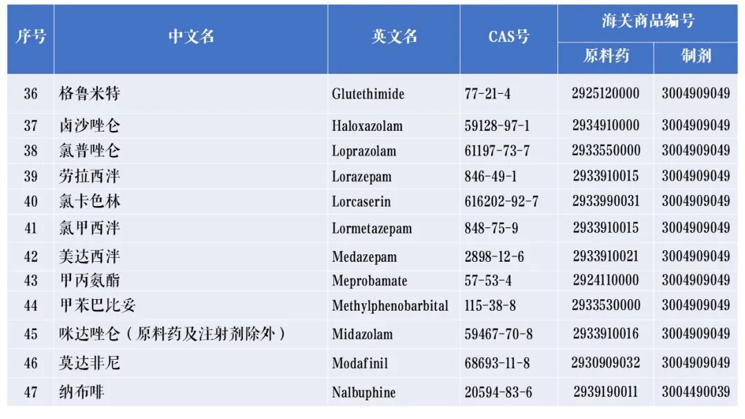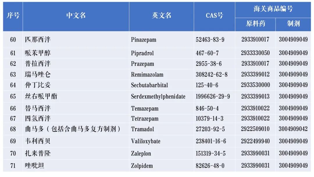 药用类麻醉药品和精神药品的海关商品编号(2025.11.15起施行)