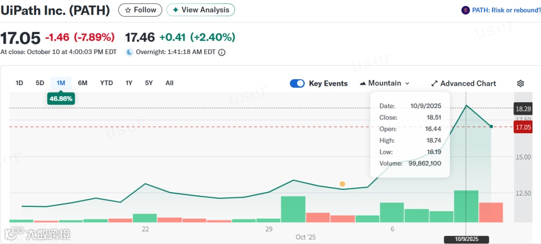 当UiPath的股价在两周内飙升近50%,创四个月新高时,整个科技圈都在追问:这家全球RPA(机器人流程自动化)巨头,凭什么突然被资本疯抢?答案就藏在它与OpenAI、NVIDIA的深度合作里。