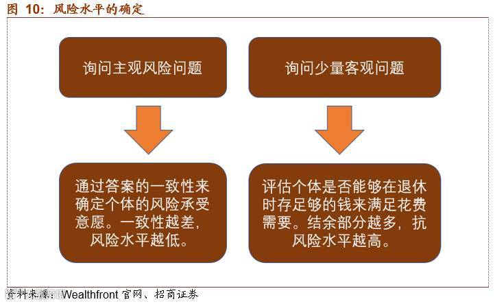 4)通过问卷调查来识别用户的风险水平并提供资产组合建议;