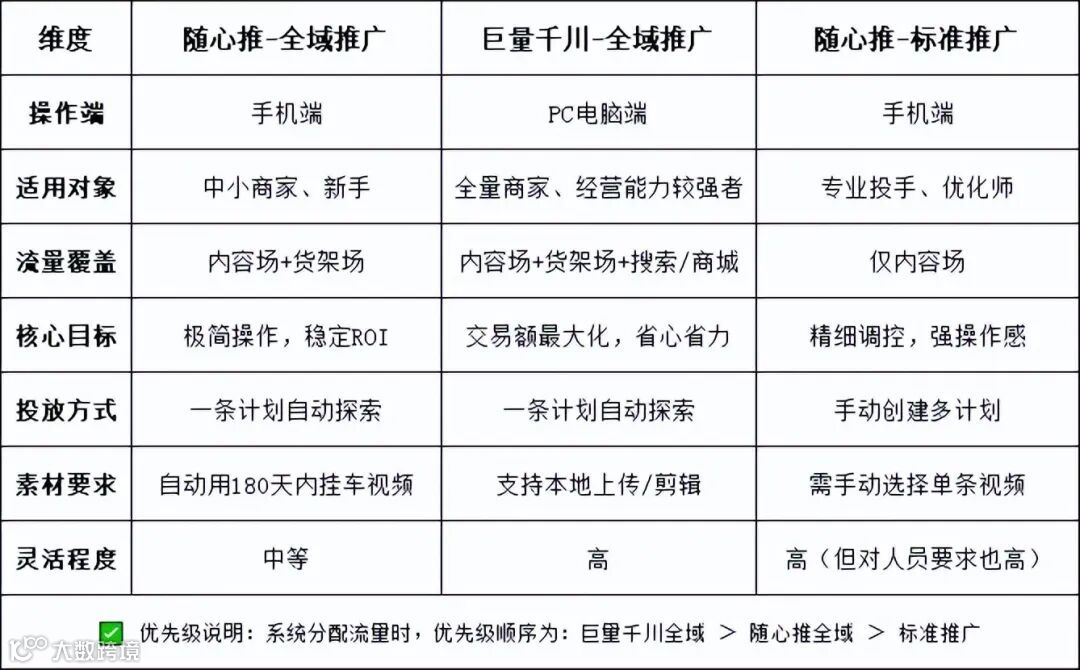 ①如果你是一个人运营抖音小店→ 优先选择随心推全域推广,手机操作、系统自动投,省时省力。