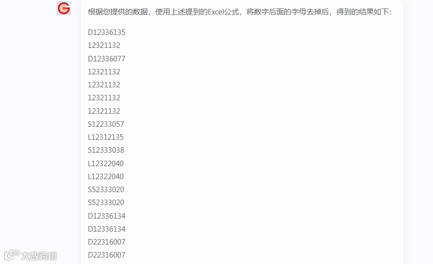 提示词:帮我把数字后面的字母去掉,并输出给我,请保留数字前面的字母: