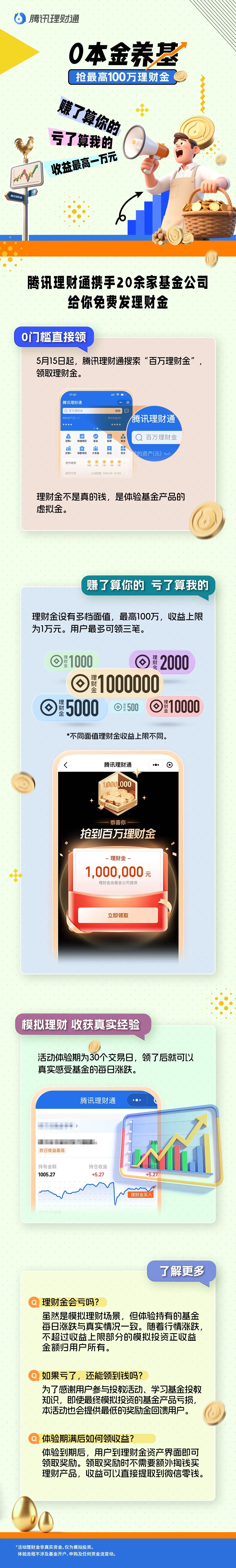 通过理财金模拟投资,赚了算你的,最高1万元现金收益,亏了算我的。