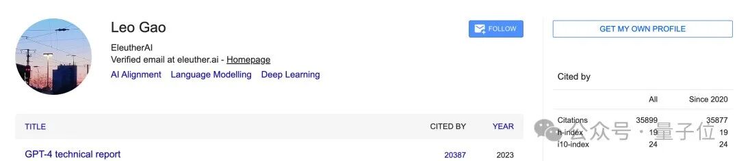 通讯作者为Leo Gao,研究方向是AGI对齐,曾参与过GPT-Neo、GPT-4的研究。论文被引数3.5w+,h-index为19。