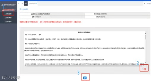 进入页面后,看左上面,选“三方协议查询-同意-签约”。