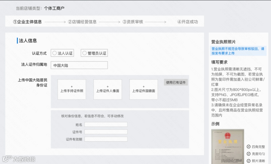 手机端仅支持普通企业店入驻,且只接受法人本人认证。若你想通过手机便捷入驻,务必确认符合此条件。