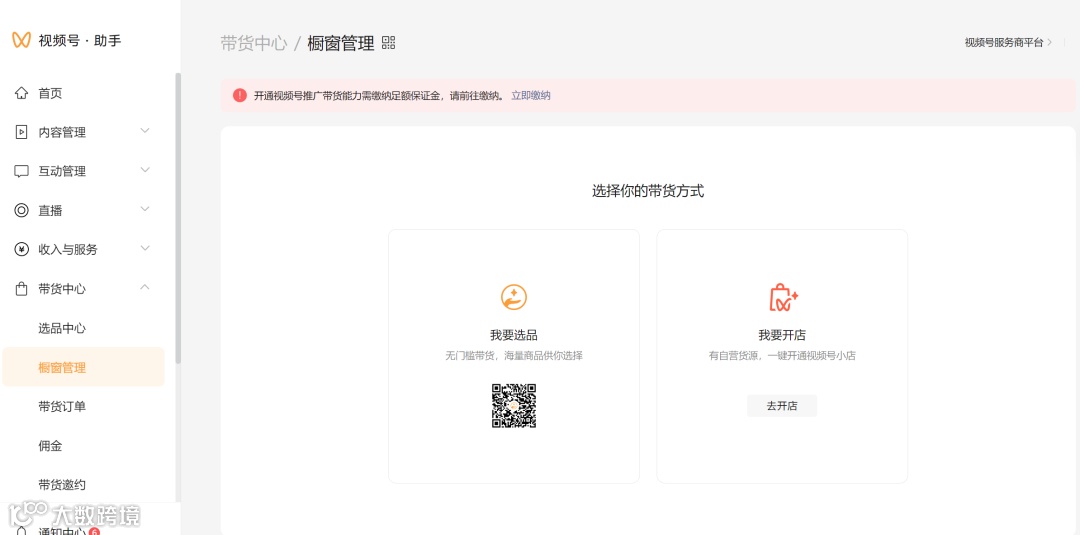 进入【视频号助手】(https://channels.weixin.qq.com)→ 【带货中心】→ 【开通橱窗】