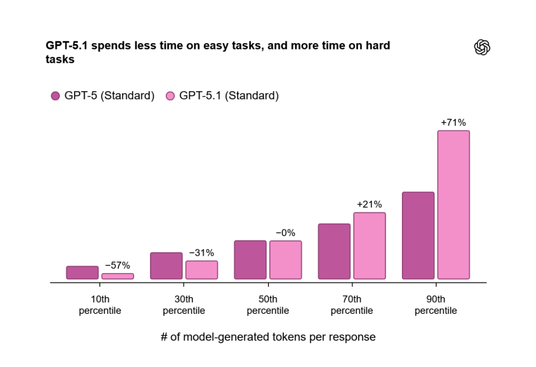 正是在这种大背景下,OpenAI推出了GPT-5.1。它在性能上并没有跨越式提升,更多关注的是交互体验优化。