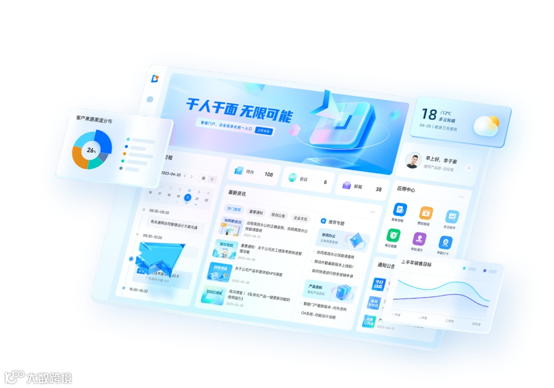 【道一云】近期,道一云推出了新产品“智能门户(七星Portal)”,解锁一站式办公新体验。智能门户是一款面向中大型企业的中台级产品,可整合企业各应用的信息、待办数据,自带开箱即用的场景应用,还能根据不同岗位与角色,为企业提供千人千面的工作台,以实现入口统一,管理秩序统一。